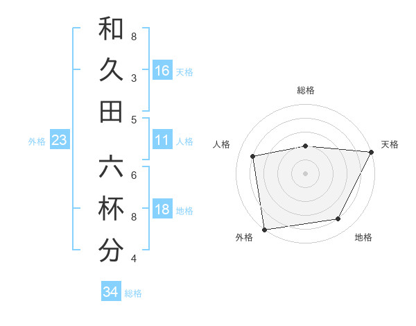 和久田 六杯分さんを姓名の画数から五運を鑑定