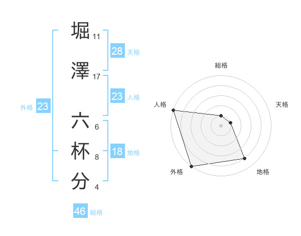 堀澤 六杯分さんの外格は23画の5点!