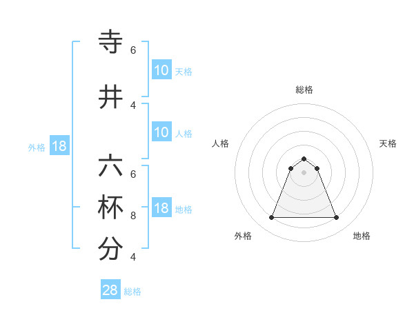 寺井 六杯分さんの総格は28画の1点!