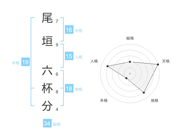 尾垣 六杯分さんの総格は34画の2点!