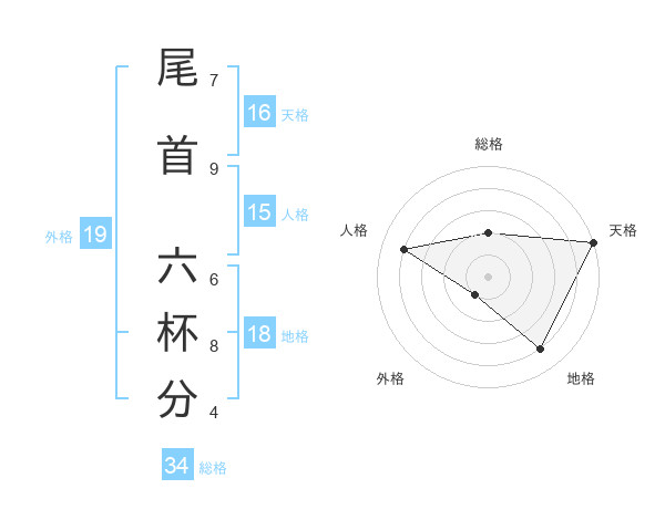 尾首 六杯分さんを姓名の画数から五運を鑑定