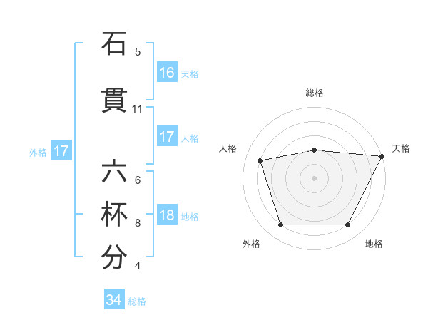 石貫 六杯分さんの総格は34画の2点!