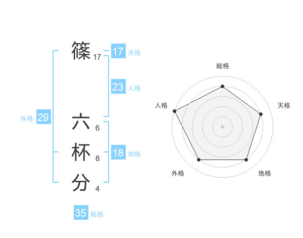 篠 六杯分さんを姓名の画数から五運を鑑定