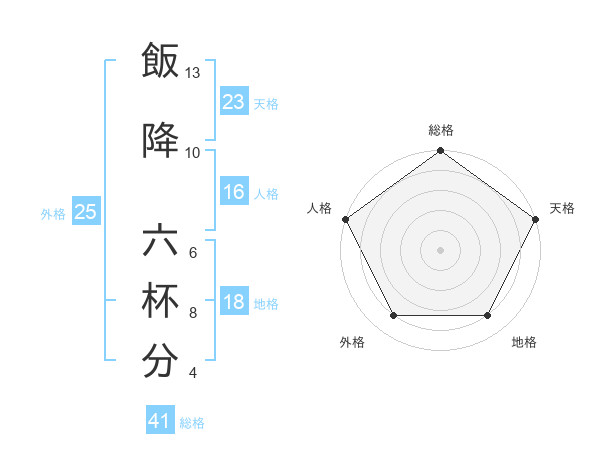 飯降 六杯分さんを姓名の画数から五運を鑑定