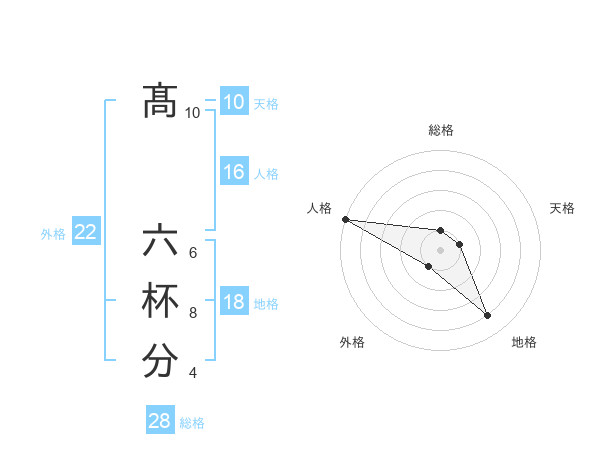 髙 六杯分さんの外格は22画の1点!