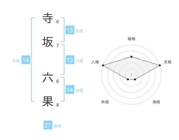 寺坂 六果さんを姓名の画数から五運を鑑定