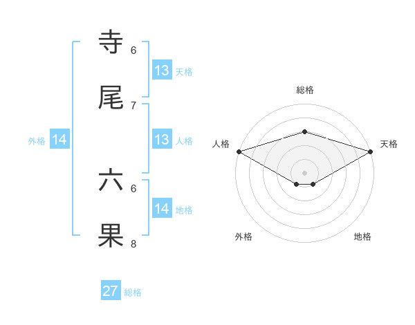 寺尾 六果さんの天格は13画の5点!