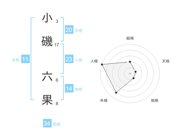 小磯 六果さんの外格は11画の4点!