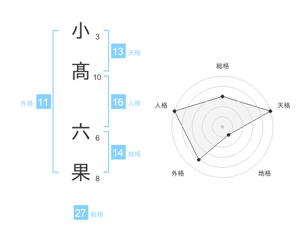 本サイトの鑑定結果の正当性は保証しません。鑑定結果は参考程度にお読みください。実際の名づけにご利用される場合は、姓名判断についてご自身でよくお調べください。