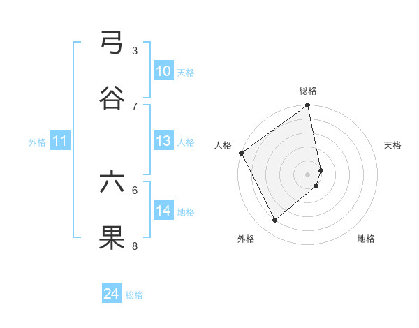 弓谷 六果さんの総格は24画の5点!