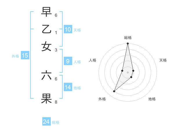早乙女 六果さんを姓名の画数から五運を鑑定