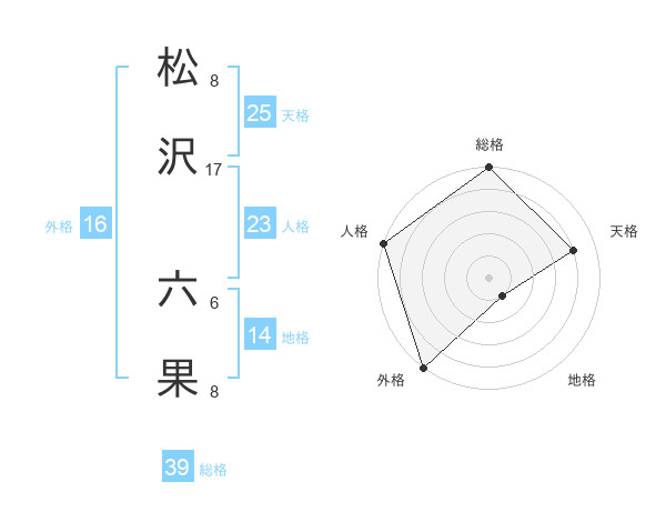 松沢 六果さんの総格は39画の5点!