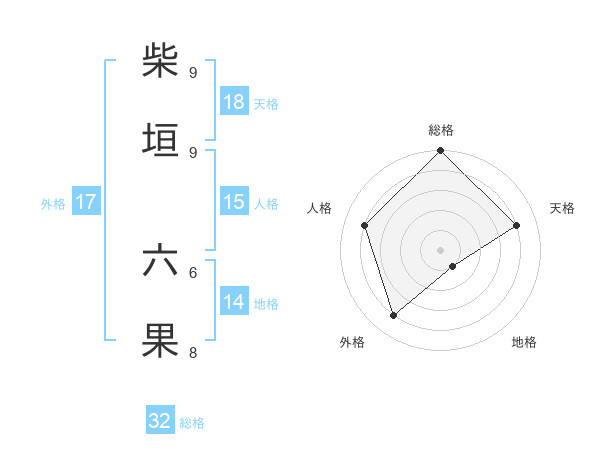 柴垣 六果さんの天格は18画の4点!