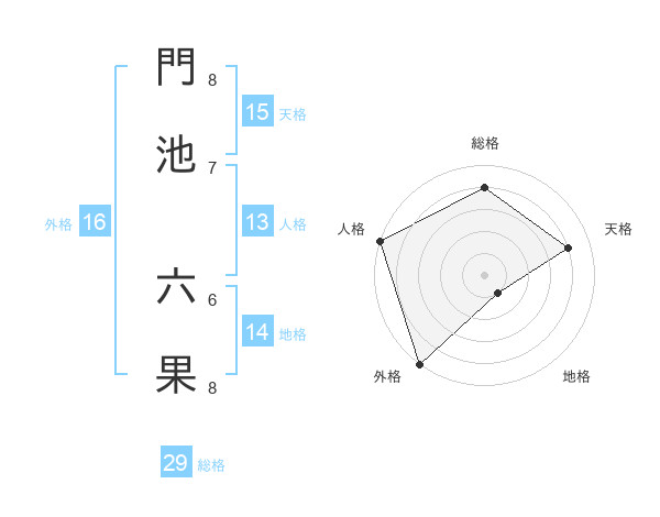 門池 六果さんの外格は16画の5点!