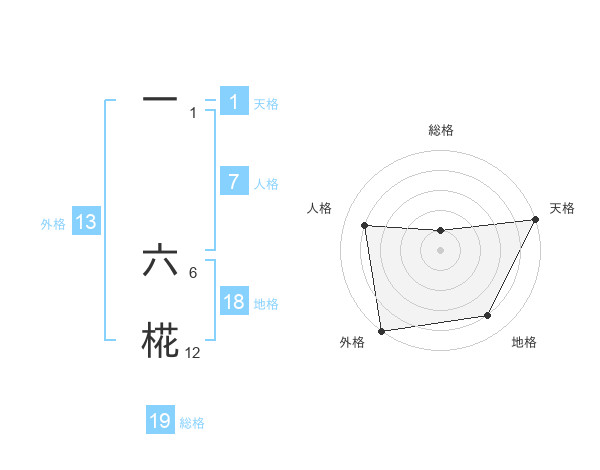 一 六椛さんの外格は13画の5点!