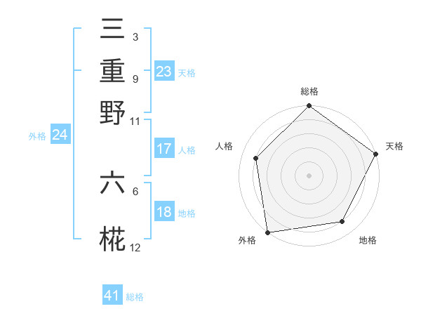 三重野 六椛さんを姓名の画数から五運を鑑定