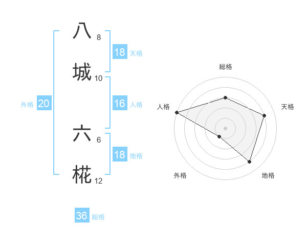 八城 六椛さんの天格は18画の4点!