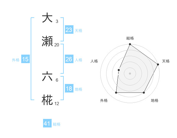 大瀬 六椛さんを姓名の画数から五運を鑑定