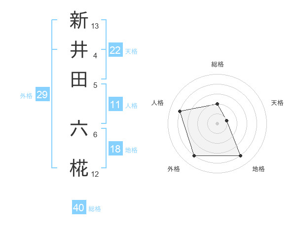 新井田 六椛さんを姓名の画数から五運を鑑定