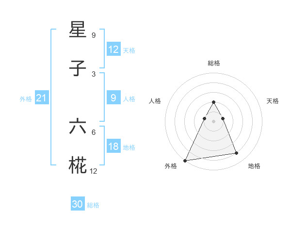 星子 六椛さんの総格は30画の2点!