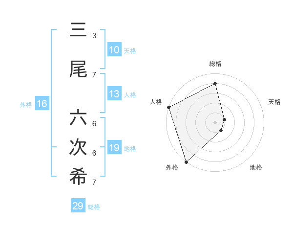 三尾 六次希さんを姓名の画数から五運を鑑定
