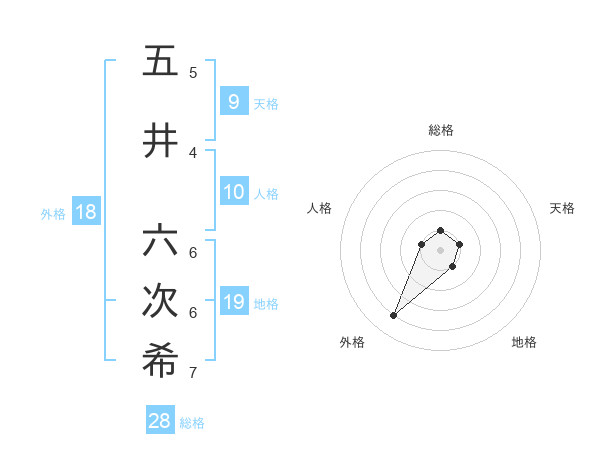 五井 六次希さんの外格は18画の4点!