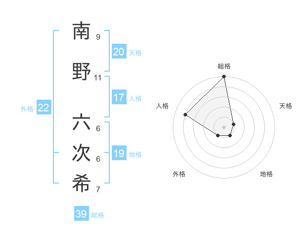 南野 六次希さんの総格は39画の5点!