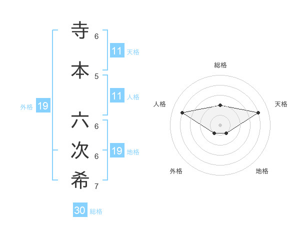 寺本 六次希さんの外格は19画の1点!