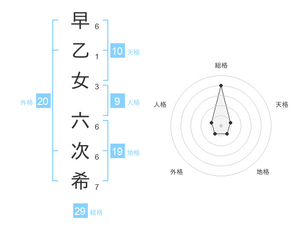 早乙女 六次希さんを姓名の画数から五運を鑑定