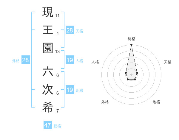 現王園 六次希さんを姓名の画数から五運を鑑定