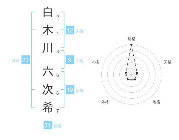 白木川 六次希さんを姓名の画数から五運を鑑定