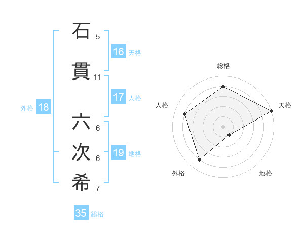 石貫 六次希さんを姓名の画数から五運を鑑定