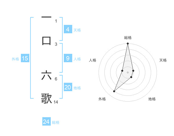 一口 六歌さんの地格は20画の1点!