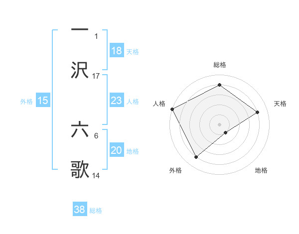 一沢 六歌さんを姓名の画数から五運を鑑定
