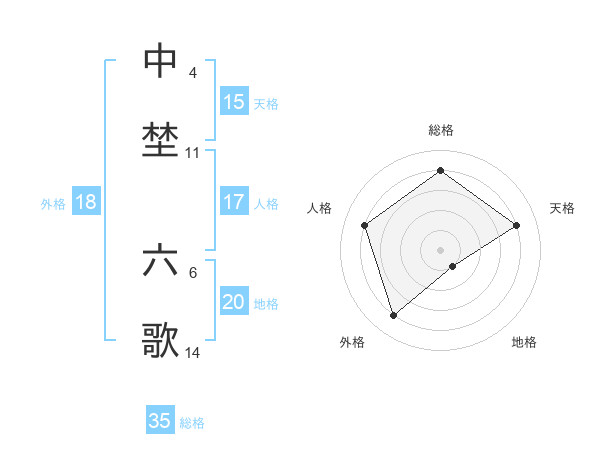 中埜 六歌さんを姓名の画数から五運を鑑定