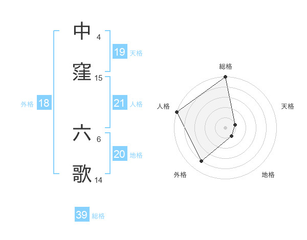 中窪 六歌さんを姓名の画数から五運を鑑定
