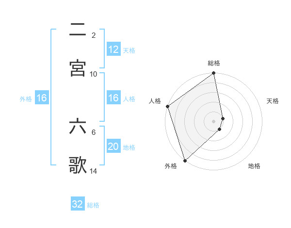 二宮 六歌さんを姓名の画数から五運を鑑定