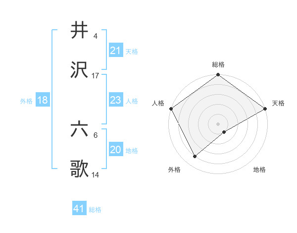 井沢 六歌さんの総格は41画の5点!