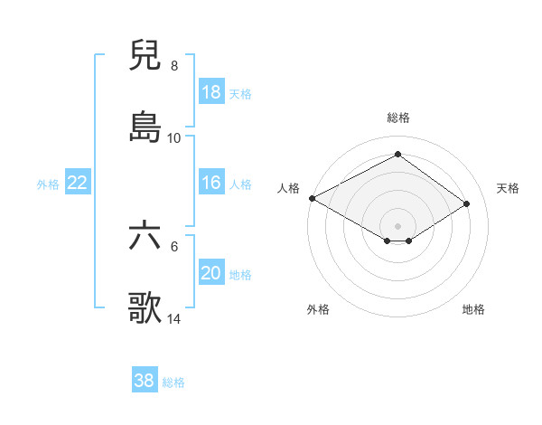 兒島 六歌さんを姓名の画数から五運を鑑定