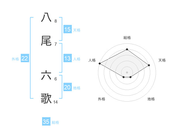 八尾 六歌さんを姓名の画数から五運を鑑定