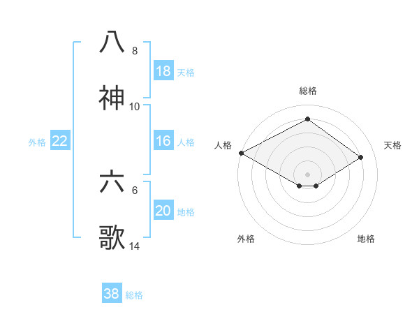 八神 六歌さんの外格は22画の1点!