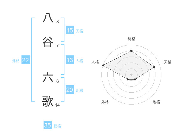 八谷 六歌さんの外格は22画の1点!