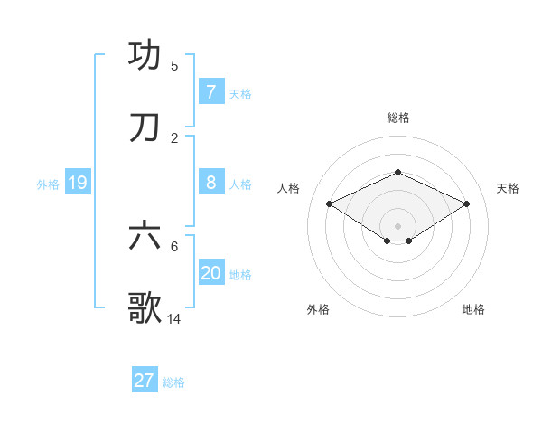 功刀 六歌さんの外格は19画の1点!