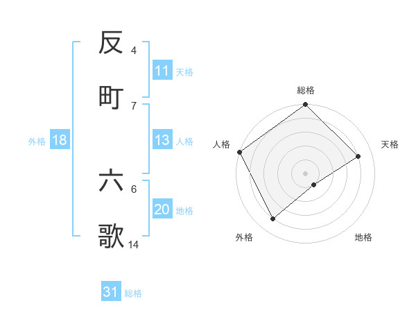 反町 六歌さんの総格は31画の5点!