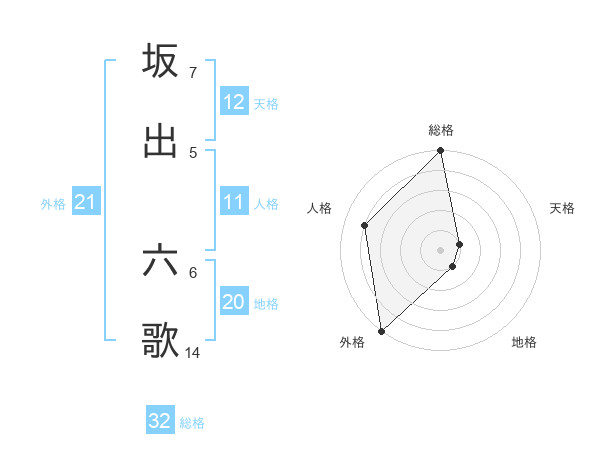 坂出 六歌さんを姓名の画数から五運を鑑定