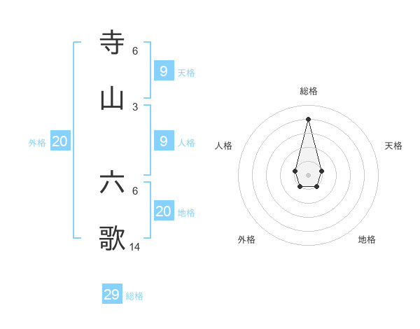 寺山 六歌さんを姓名の画数から五運を鑑定