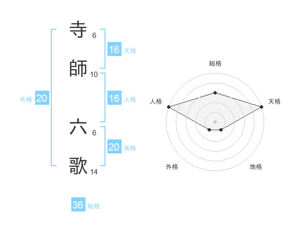 寺師 六歌さんを姓名の画数から五運を鑑定