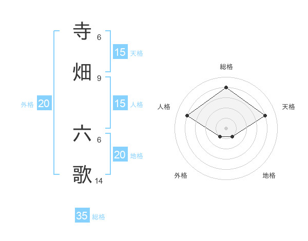 寺畑 六歌さんを姓名の画数から五運を鑑定