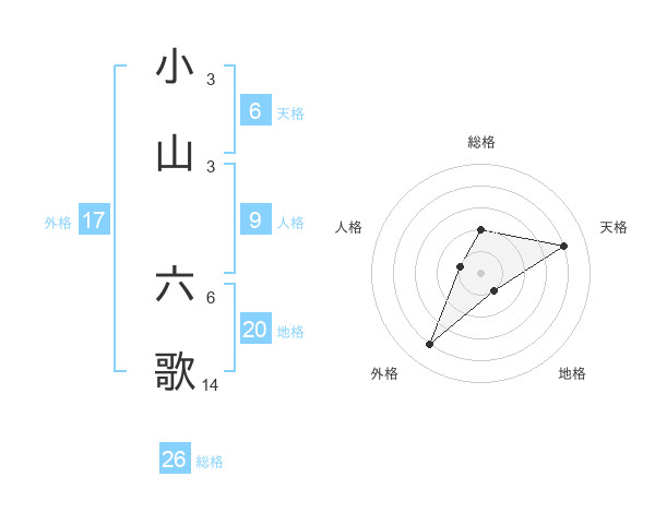 小山 六歌さんの総格は26画の2点!