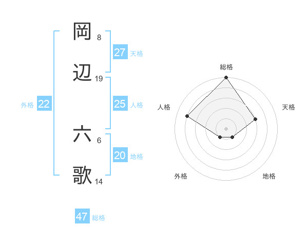 岡辺 六歌さんの総格は47画の5点!